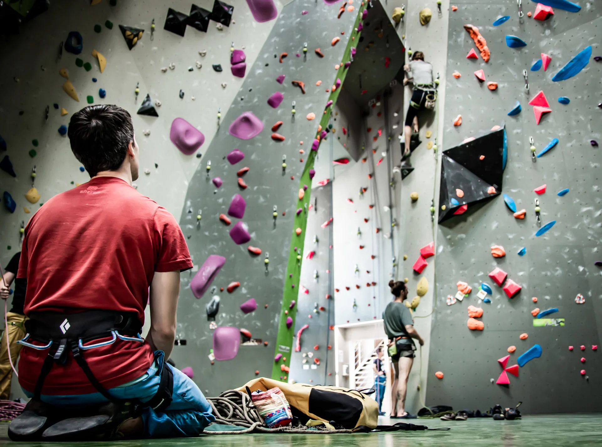 - Abwechselnd klettert eine Person die Wand hinauf, während die andere Person am Boden bleibt und das Sicherungsgerät bedient.