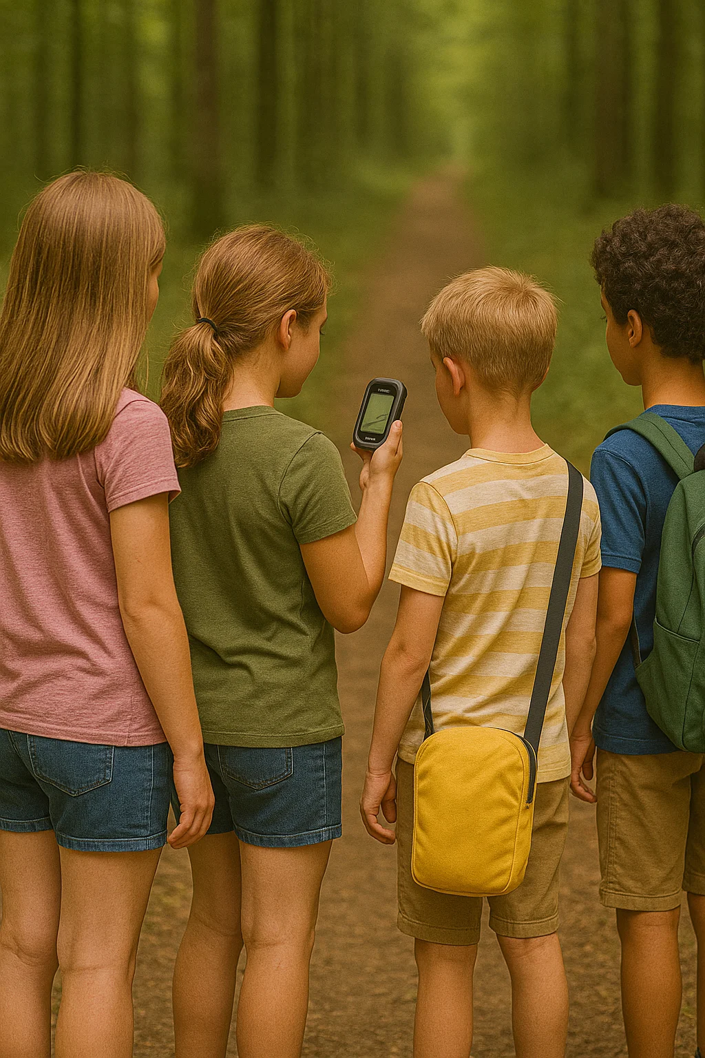 Vor Ort werden die Kinder dann mit den GPS-Geräten vertraut gemacht, und ihnen wird die Funktionsweise der Schatzsuche erklärt. Dann gehen wir gemeinsam in den nahegelegenen Wald (unterhalb Spiegelslust) und beginnen mit dem Geo-Caching.