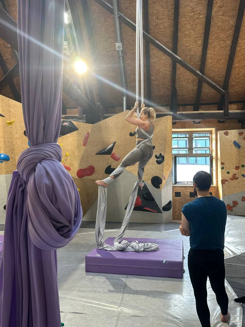 Jede*r trainiert auf dem eigenen Level – gemeinsam am Tuch, mit Raum für individuelle Begleitung und kreative Entfaltung.